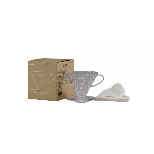 Hario V60 02 transparan plastik dripper çok popüler ve keyifle kahve demleyebileceğiniz şık bir ürün.